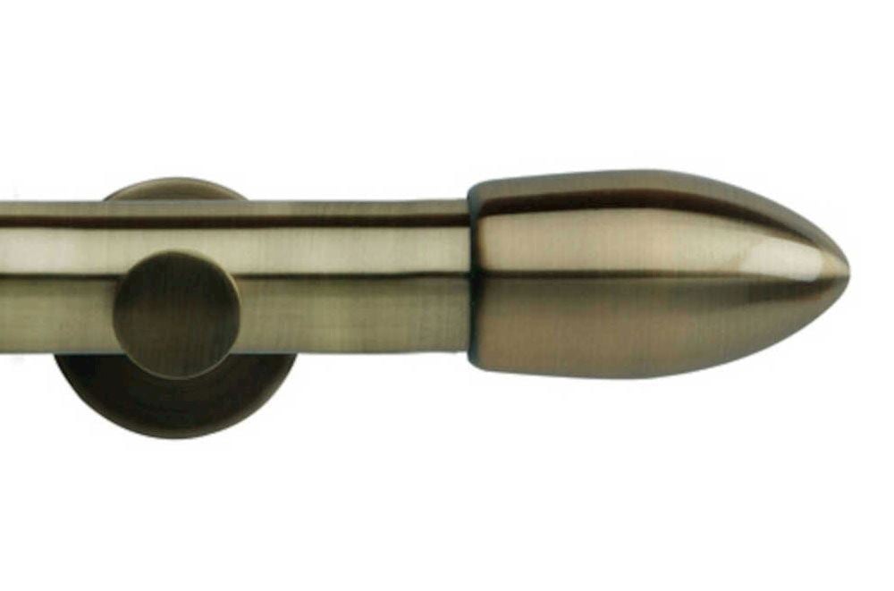 The Rolls Neo 35mm Bullet in spun brass finish is an astounding eyelet pole set with finials, pole and wall fix cylinder brackets. This eyelet pole set will complete any window dressing.