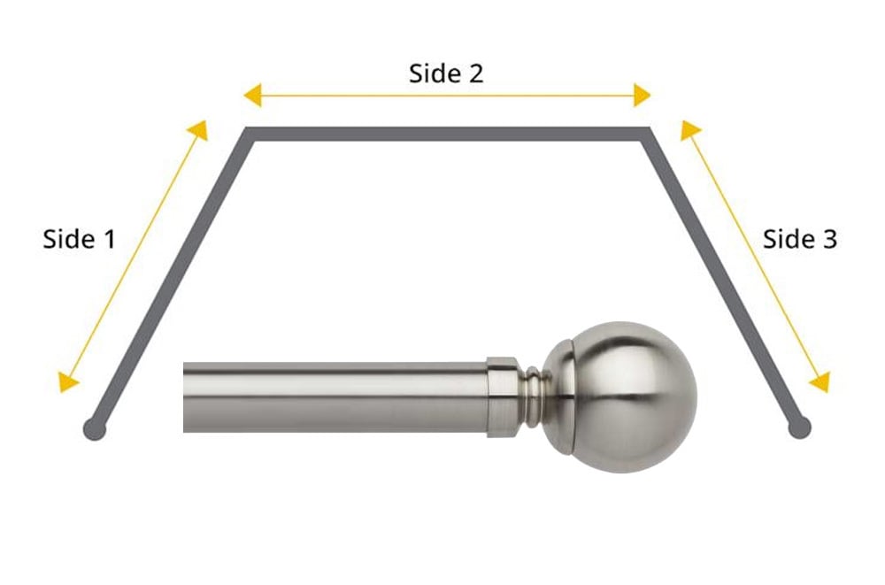 Complete with Ball finials, 28mm poles, corner bends and 5 strong brackets, this stainless steel 28mm metal eyelet kit will complete your 3 sided bay window with a touch of elegance and class.