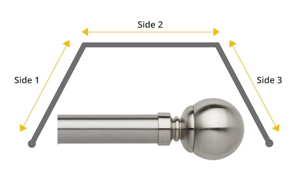 Complete with Ball finials, 35mm poles, corner bends and 5 strong brackets, this stainless steel 35mm metal eyelet kit will complete your 3 sided bay window with a touch of elegance and class.