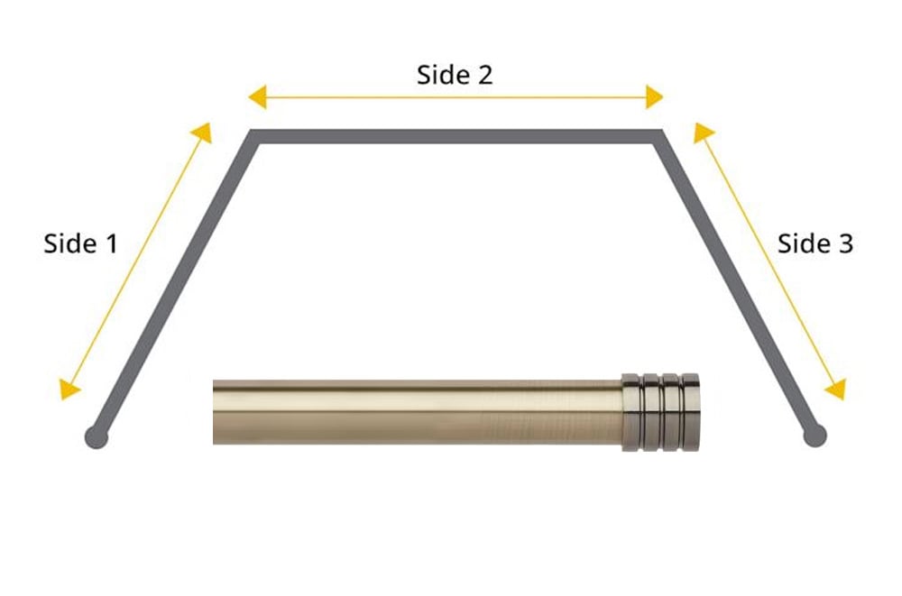 The Rolls Neo 28mm Stud 3-Sided Bay Window Eyelet Curtain Pole in Spun Brass is a stylish and practical solution, specially designed for use with eyelet curtains in three-sided bay windows. Finished in a warm spun brass tone and featuring modern stud finials, this pole brings a refined and contemporary look to your window space while allowing curtains to move smoothly around bay angles.