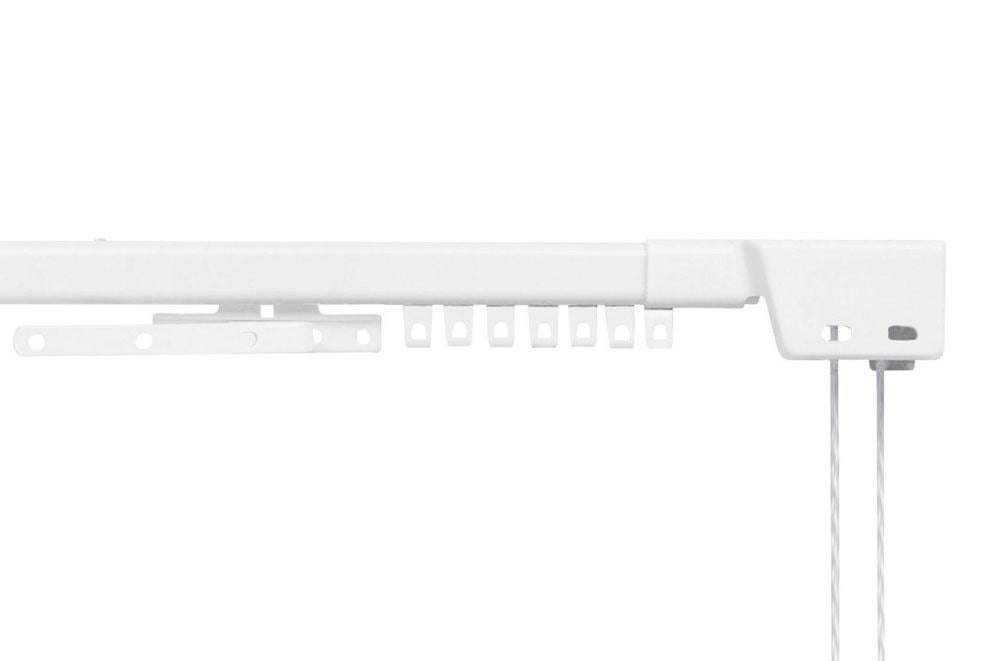 The Universal Metal Corded Extendable Curtain Track in White offers a practical, no-fuss solution for fitting curtains to straight window spaces. Designed with an even centre draw, the curtains open and close evenly, with half stacking to each side for a balanced and tidy appearance. This pre-assembled, extendable track system eliminates the need for cutting, making it ideal for quick and easy installation.