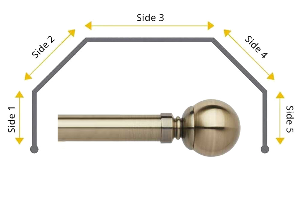 Rolls Neo 28mm Ball 5 Sided Bay Window Curtain Pole Spun Brass
