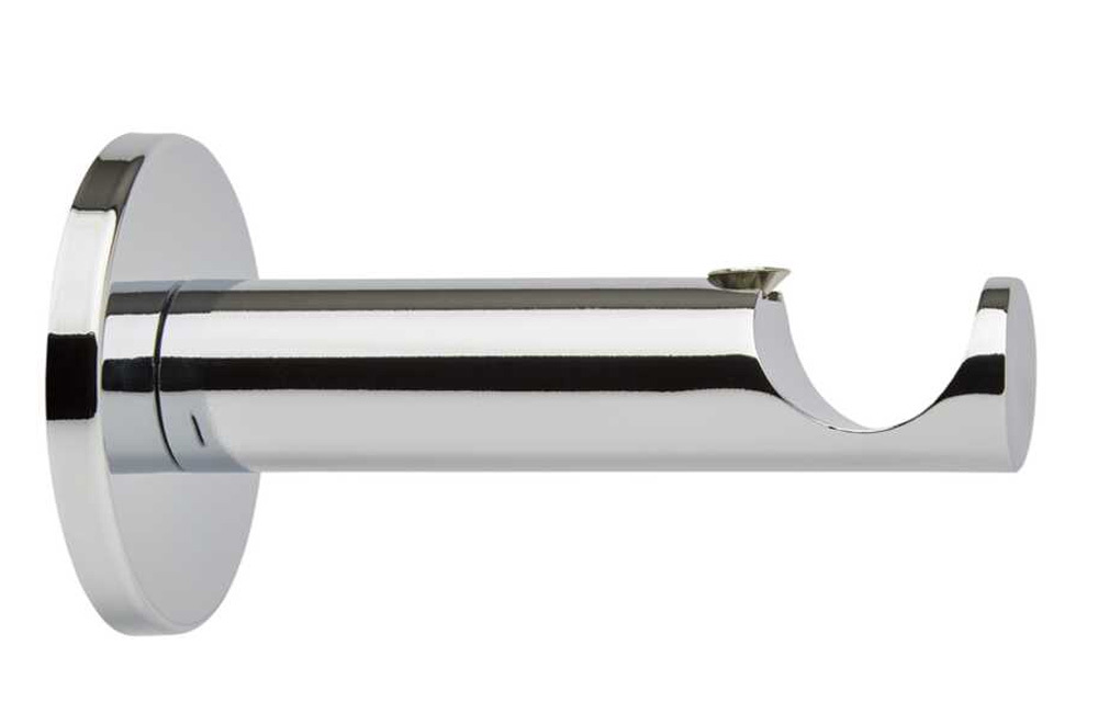 Featuring a solid cylindrical backplate, the fixed arm is securely screwed into place, ensuring excellent stability and long-lasting performance. The polished chrome finish adds a sleek, contemporary touch, making it an ideal match for modern interiors and coordinating curtain pole accessories.