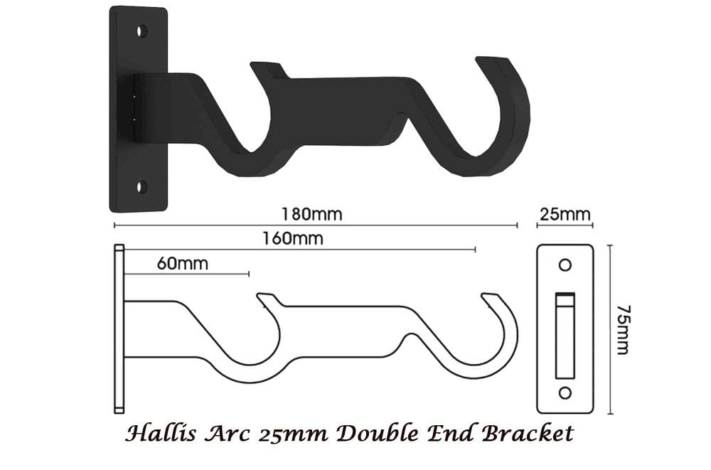 Hallis Arc 25mm Black Ball Double Curtain Pole