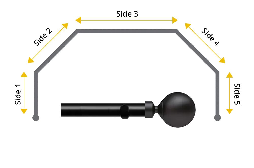 Speedy 28mm Sphere 5 Sided Bay Window Ceiling Fixed Curtain Pole Black