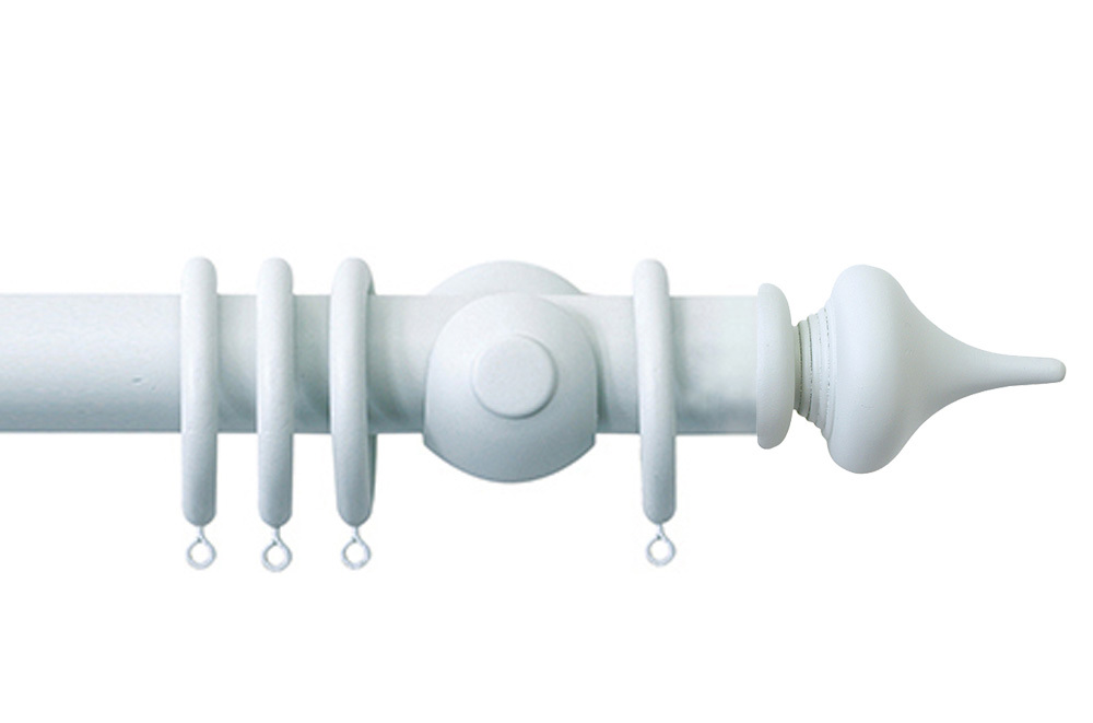 Handcrafted from quality wood, the 40mm diameter pole provides a strong and durable structure suitable for supporting a variety of curtain fabrics. The set is supplied with the wooden pole, coordinating wall brackets, curtain rings and decorative minaret finials. The finials feature a smooth dome-shaped design that adds a refined and understated decorative detail.