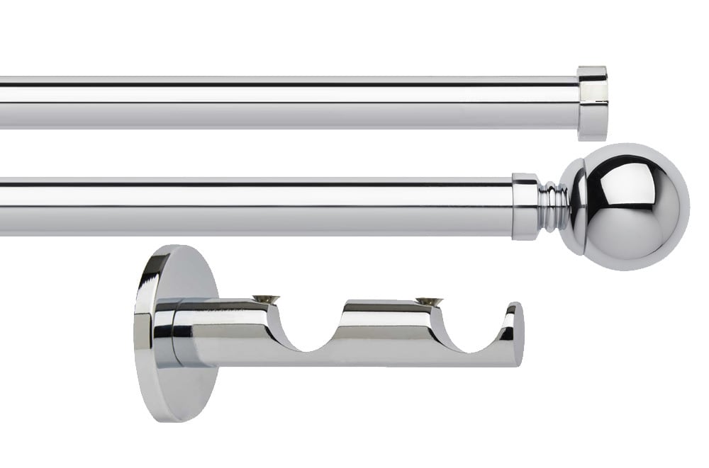 Designed for light to medium weight curtains, the Rolls Neo 28mm Ball Double Eyelet Pole in Chrome combines premium styling with practical functionality, making it a perfect choice for achieving a sophisticated layered curtain display.