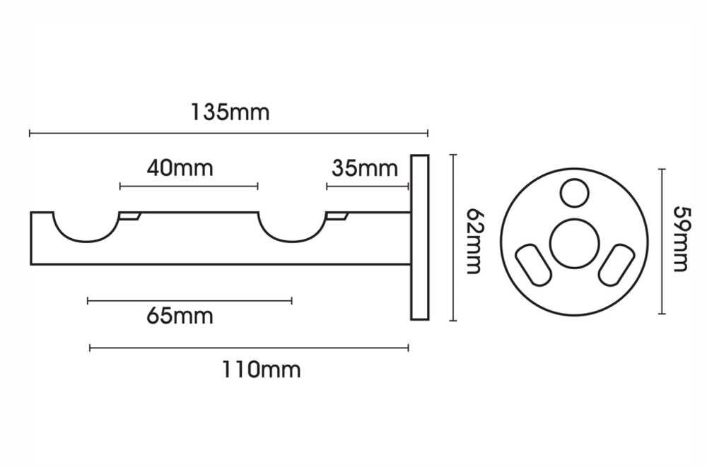 The poles are supported by strong double brackets that hold two 28mm poles securely in place. The brackets are non-adjustable and supplied with a fixed projection of 135mm and a 62mm cylinder-style back plate, providing a clean and modern wall fixing while ensuring dependable support.
