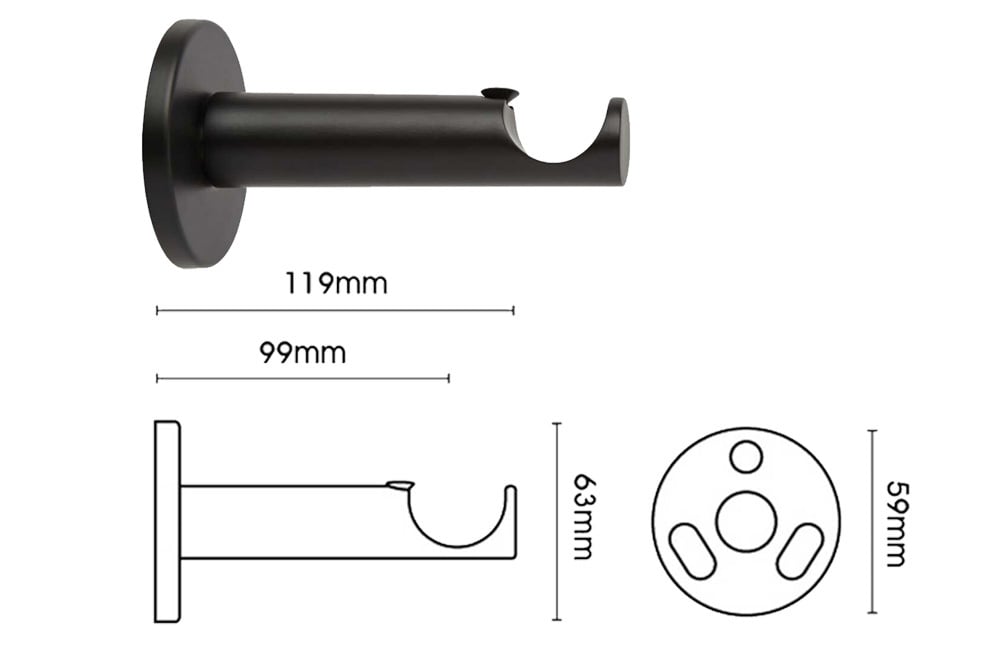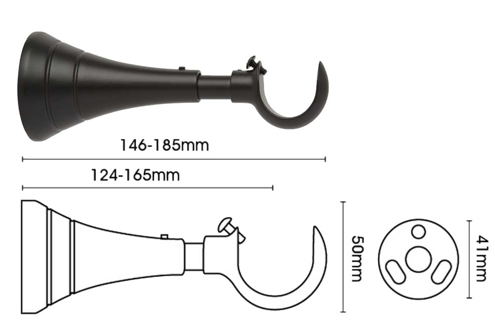 This metal curtain pole set is supplied complete with the pole, matching end cap finials, curtain rings and brackets, providing everything required for installation. The pole is available with two different bracket styles to suit different installation needs and interior preferences. The cup bracket offers an adjustable projection, extending between 146mm and 185mm, allowing additional flexibility when fitting around radiators, window sills or deeper curtains. Alternatively, the cylinder bracket provides a more compact look with a fixed projection of 119mm.