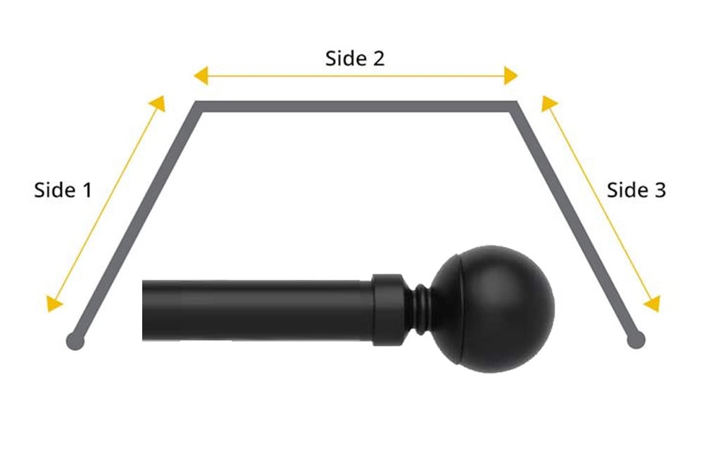 The Rolls Neo 28mm Ball 3 Sided Bay Window Eyelet Pole in Matt Black is designed to provide a stylish and practical solution for hanging eyelet curtains in a three sided bay window. Finished in a contemporary matt black, this curtain pole set allows eyelet curtains to glide smoothly around the corners of a bay window, overcoming the common challenges of dressing bay windows with standard poles.