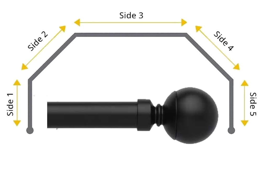 Rolls Neo 28mm Ball 5 Sided Bay Window Curtain Pole Matt Black