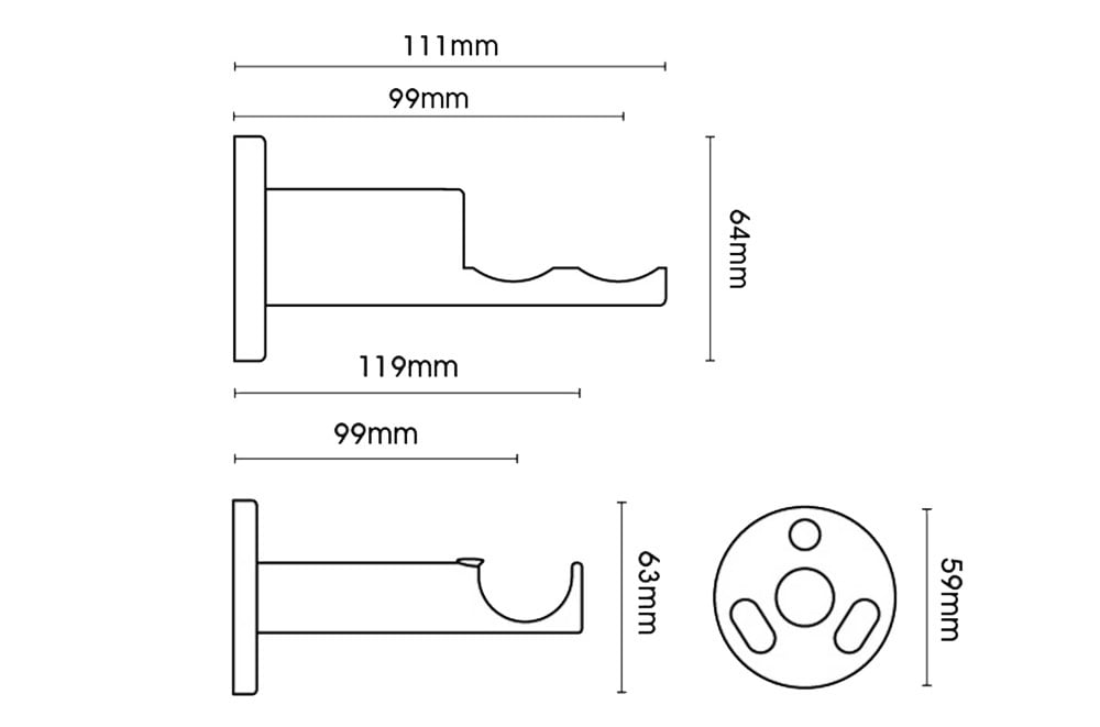 | Pole Diameter | Finial Length | Finial Height | Bracket Projection |