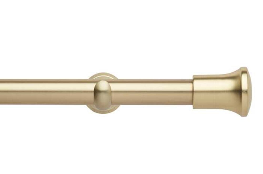 Manufactured from durable metal, the Rolls Neo 28mm curtain pole provides reliable support while maintaining a clean and streamlined appearance. The trumpet finials add a sophisticated finishing detail, enhancing the overall design while allowing the gold tones to blend effortlessly with a wide range of interior colour schemes.
