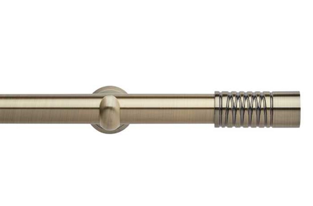The Rolls Neo 28mm Wired Barrel Eyelet Metal Curtain Pole in Spun Brass is a stylish and elegant solution, designed specifically for use with eyelet curtains. Featuring a straight metal pole with distinctive wired barrel finials, this curtain pole adds a unique textured detail while maintaining a refined and contemporary appearance. The spun brass finish offers a warm, subtle metallic tone, making it a versatile choice for both traditional and modern interiors.