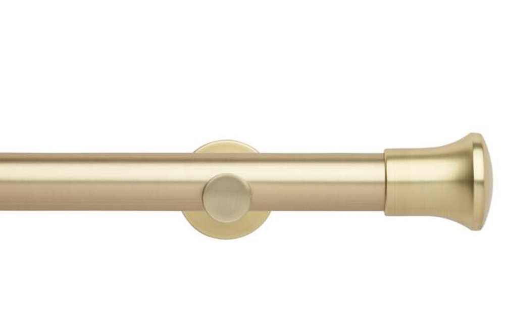 Elevate your window space with the Rolls Neo 35mm Trumpet Eyelet Curtain Pole in a rich gold finish. Designed to combine durability with standout style, this metal pole brings a sense of warmth and sophistication to any room.