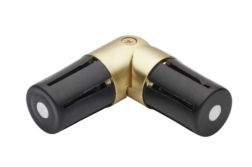 The Rolls Neo 28mm Elbow Corner Joint in a gold finish is designed to connect two 28mm diameter curtain poles, creating a smooth, fixed curve for bay window installations. Perfect for standard bay window angles that are not boxed, it allows curtains to follow the shape of the window for a seamless and elegant look.