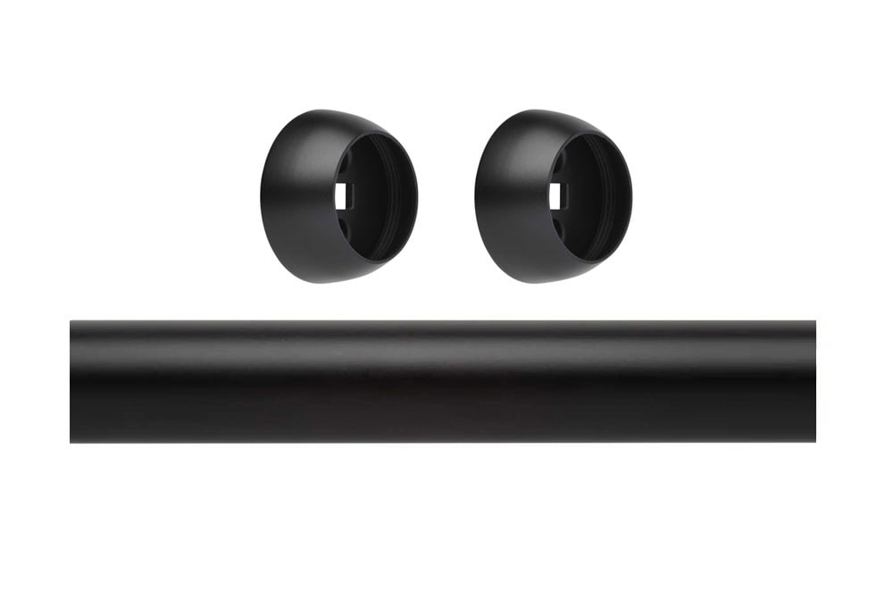 The Rolls Neo 28mm Recess Pole in a matt black finish is a practical and stylish solution for fitting curtains within a window recess where traditional wall-mounted brackets cannot be used.