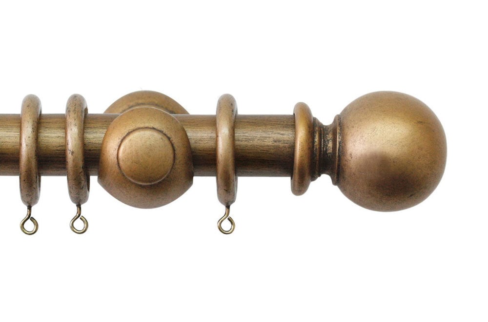 Jones Cathedral Handcrafted 30mm Ball Wooden Curtain Pole Antique Gold