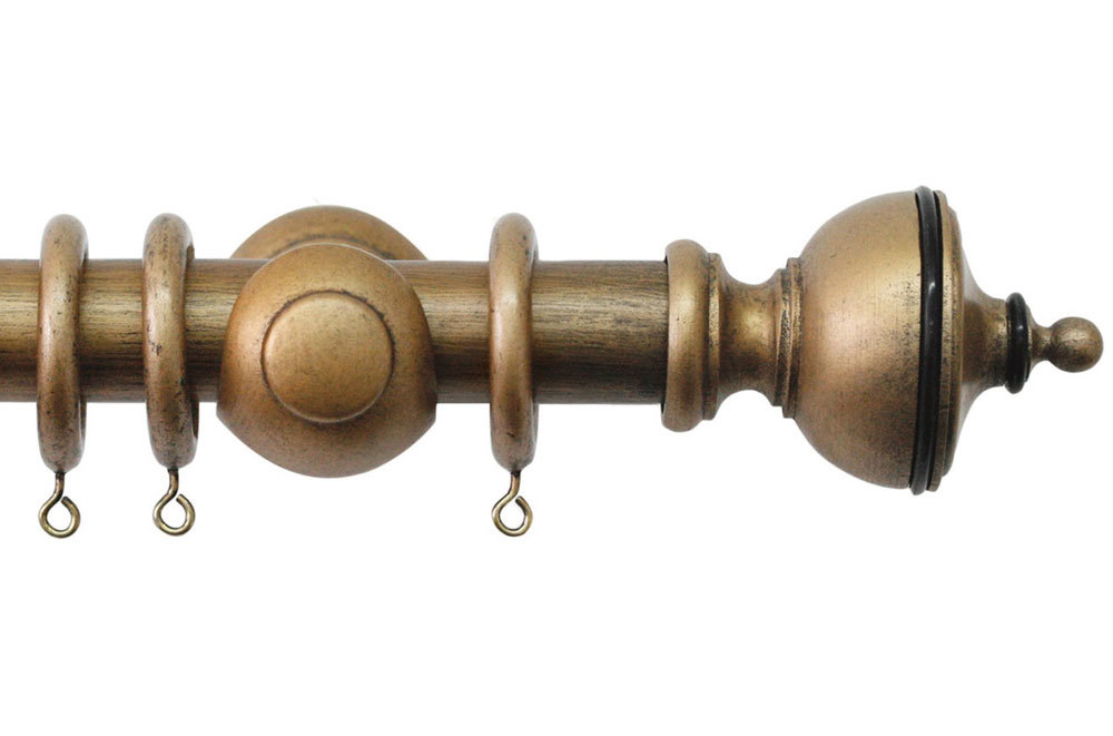 Jones Cathedral Handcrafted 30mm Exeter Wooden Curtain Pole Antique Gold