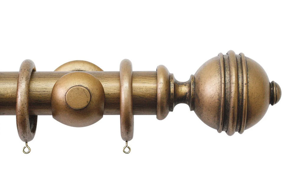 Jones Florentine Handcrafted 50mm Ribbed Ball Wooden Curtain Pole Antique Gold
