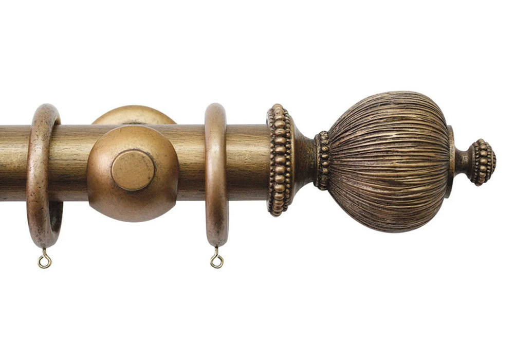 Jones Florentine Handcrafted 50mm Pleated Wooden Curtain Pole Antique Gold