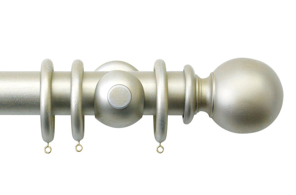 Jones Florentine Handcrafted 50mm Ball Wooden Curtain Pole Champagne Silver