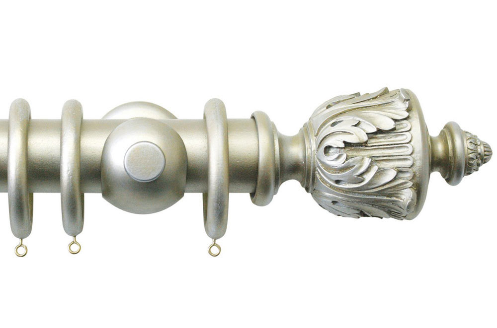 Jones Florentine Handcrafted 50mm Acanthus Wooden Curtain Pole Champagne Silver