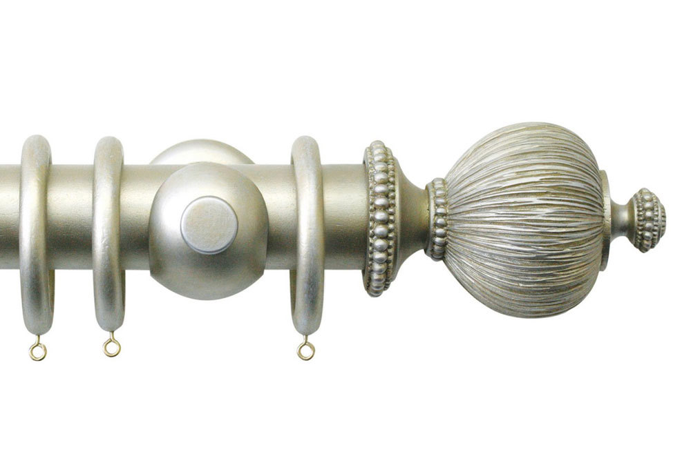 Jones Florentine Handcrafted 50mm Pleated Wooden Curtain Pole Champagne Silver