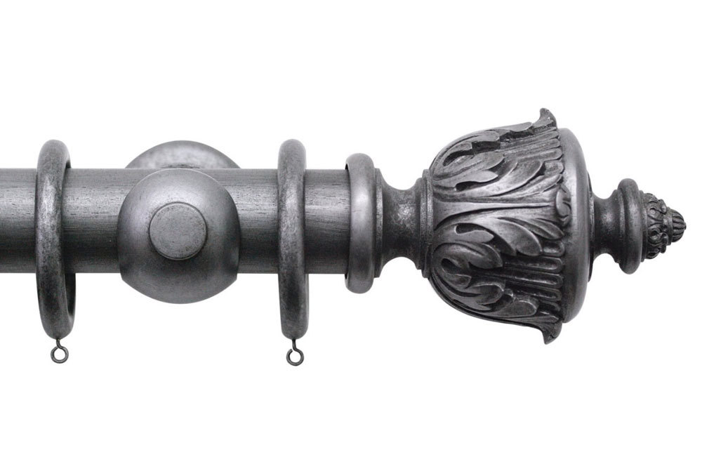 Jones Florentine Handcrafted 50mm Acanthus Wooden Curtain Pole Pewter
