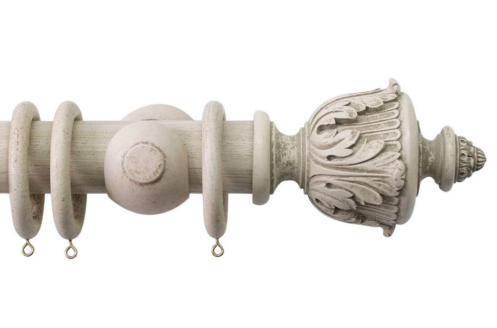 Jones Florentine Handcrafted 50mm Acanthus Wooden Curtain Pole Putty